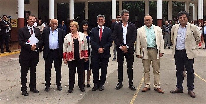 El gobernador Sergio Uñac estuvo junto al intendente de Coquimbo, Claudio Ibáñez, y a la presidente de Chile, Michelle Bachelet en la inauguración de un parque solar en dicha región.