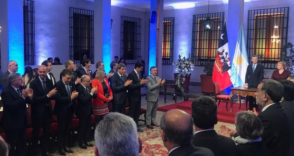 El gobernador Sergio Uñac fue integrante de la comitiva argentina que llegó hasta Chile para mantener diversas reuniones con autoridades trasandinas. Los presidentes Mauricio Macri y Michelle Bachelet encabezaron sus correspondientes delegaciones.