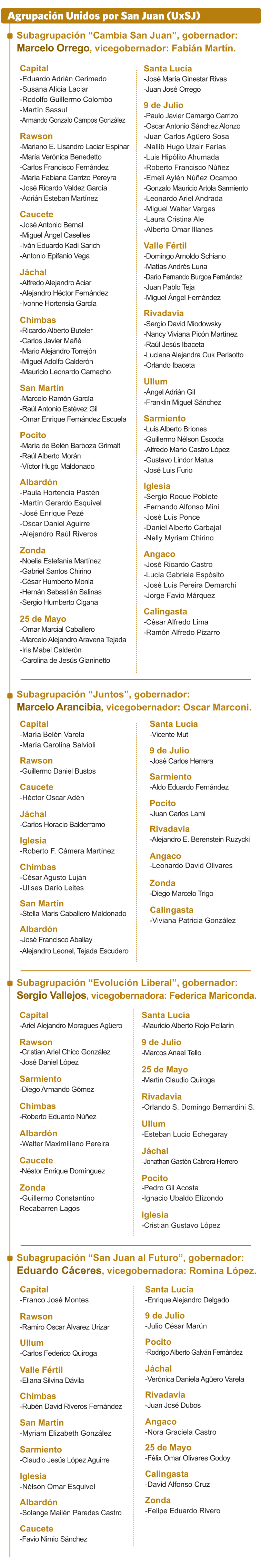 Unidos por San Juan: uno a uno, los 140 candidatos a intendente de las 4 subagrupaciones