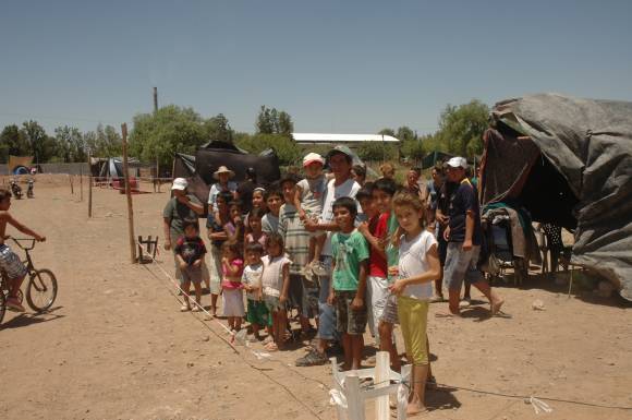 Los usurpadores -se vio unas 30 familias, ellos dicen que son más de 100- instalaron carpas y estructuras de nylon con palos y hasta delimitaron el predio, de más de una hectárea de extensión, marcando pequeños terrenos de unos 10 metros de frente por 15 de largo. Allí pernoctan y pasan al rayo del Sol el día desde el miércoles, en un grupo en su mayoría conformado por mujeres y niños.