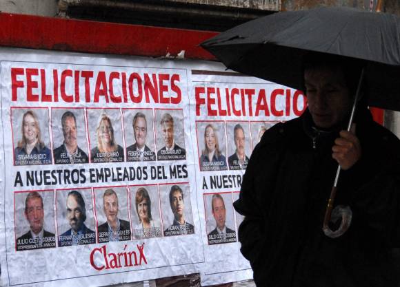 Las paredes alrededor del Congreso amanecieron tapizadas ayer con carteles de muy buena impresión y a todo color, dedicados a nueve legisladores y al vicepresidente de la Nación, a quienes supuestamente se los alaba desde el título con un irónico "Felicitaciones". La galería -foto- incluye a Silvana Giúdici, Felipe Solá, Elisa Carrió, Federico Pinedo, Oscar Aguad, Julio Cleto Cobos, Fernando Iglesias, Gerardo Morales, Patricia Bullrich y Adrián Pérez, todos miembros de la oposición que tienen posturas opuestas y críticas hacia la decisión gubernamental de avanzar contra la prensa. La supuesta firma de los carteles se le atribuye a "Clarín" y en los mismos se incluye una peyorativa dedicatoria: "a nuestros empleados del mes". En el mes de abril, los defensores del gobierno habían utilizado la misma técnica para mostrar las caras de un grupo de periodistas del Grupo Clarín, a quienes se les preguntaba si se podían considerar "periodistas independientes".