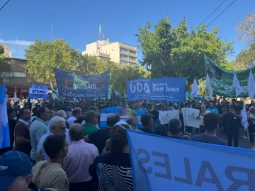 Una columna de manifestante, encabezados por banderas de UDAP y del Sindicato de Camioneros, iniciaron le caminata desde Ignacio de la Roza y Mendoza por las inmediaciones de la plaza principal de la provincia. Seguido a ellos aparecieron banderas de UPCN, Luz y Fuerza, UDA, ASIJEMIN, ADICUS, APUNSJ, entre otros.