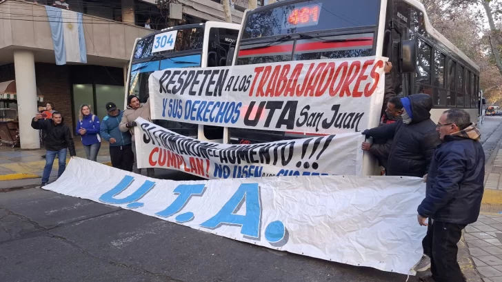 La UTA realizó una protesta de algunos minutos esta mañana en el centro de San Juan. Cortaron la calle Santa Fe, en frente de la Subsecretaría de Trabajo para protestar por lo que consideran son dos compromisos de pagos que figuran en actas en las que tuvo intervención la repartición estatal y que los empresarios “están incumpliendo”.