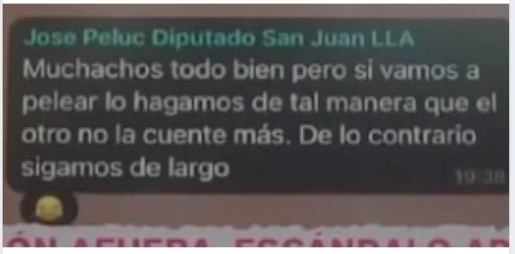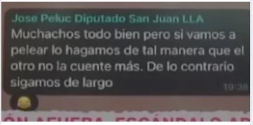 El mensaje de whatsapp se hizo viral cuando en el programa que conduce Jorge Rial en C5N, se hizo público. Fue escrito y mandado en un grupo por el diputado nacional por LLA de San Juan, José Peluc.