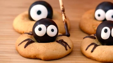 ¿Miedo a las arañas? ¡Mira cuántas de ellas tenemos en nuestra cocina! Con base de galletas y cuerpo de chocolate, esta receta es una de nuestras favoritas. Con esos ojitos tan graciosos y siendo de tan fácil elaboración, los niños se lo pasarán en grande creando sus propias arañitas.