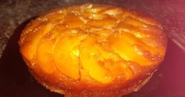 - Desmolda sobre el plato de presentación mientras la torta está caliente y listo, ya podrás disfrutar la tarta de durazno fácil y rápida.