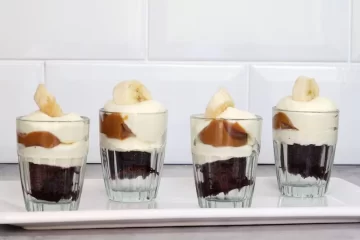 - Decorar con salsa de chocolate y rodajas de banana.