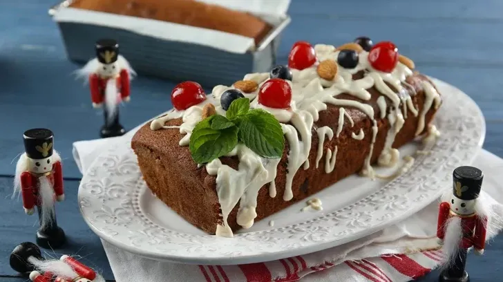 La decoración casera del budín navideño puede ser un glacé fácil, cerezas confitadas y trocitos de higos.