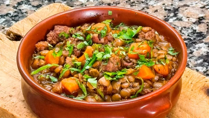 Esta receta brinda el paso a paso para preparar la versión tradicional del guiso de lentejas. Existen otras versiones como la vegana y la que se elabora con arroz. La base son las lentejas, que deben dejarse en remojo un mínimo de tres horas antes de cocinarse, pero el resto de los ingredientes pueden variarse a gusto del consumidor.