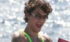 Mayer, de 31 años, lució un particular traje de baño llamado "Mankini", una mexcla de bikini y "Man" ("hombre", en inglés), según publicó la revista People recientemente. El mismo traje de baño, del mismo color, fue usado por el comediante Sacha Baron Cohen para su ridículo personaje, "Borat".