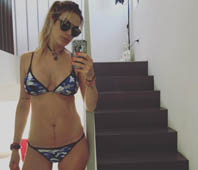 Con una pequeña bikini mostrando su abdomen ya chato, la modelo publicó dos selfies frente al espejo con los hashtag ‘tres semanas’, ‘sí se puede’ y ‘post embarazo’.