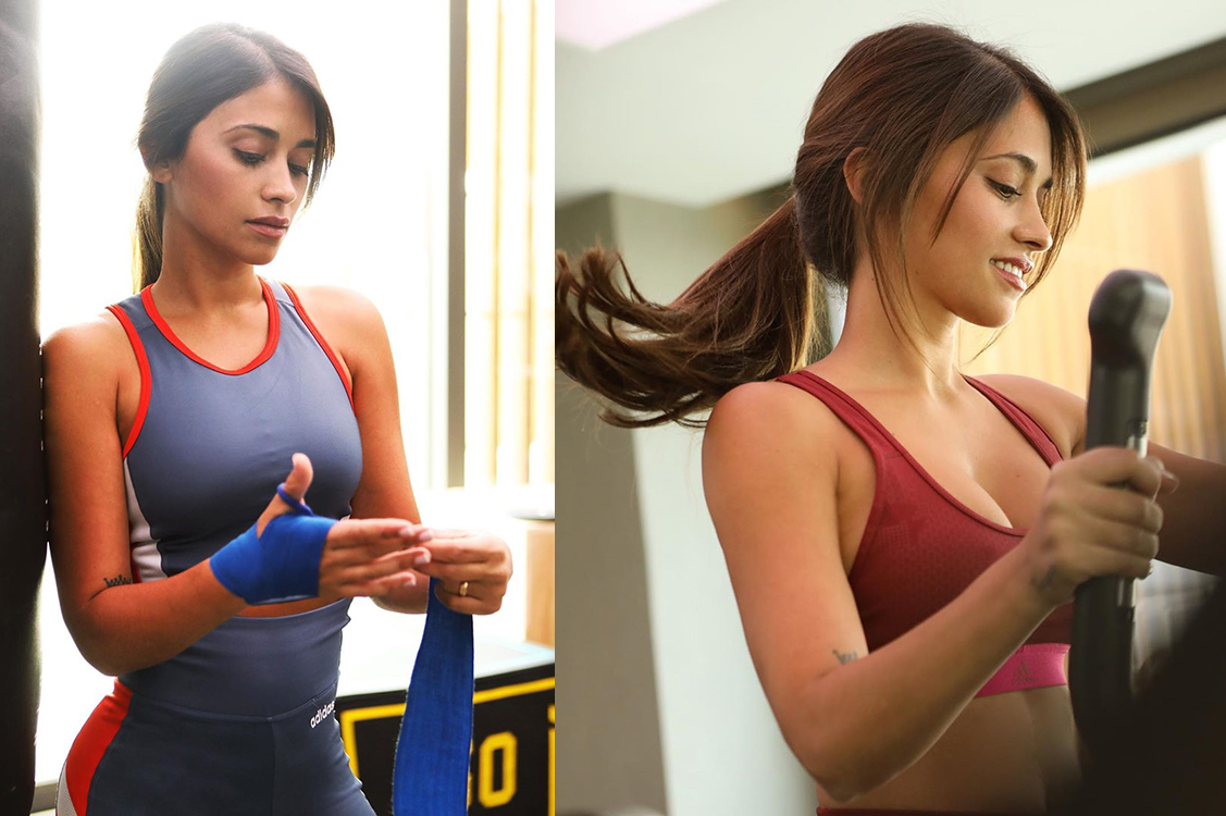 La mujer del crack del fútbol busca pasar el tiempo entrenando en el gimnasio de la mansión que comparte con su familia. Bajo la consigna #moveteencasa, la rosarina animó a sus seguidores a mantenerse activos. Así se la vio realizando su rutina diaria de ejercicios con mancuernas y pesas.