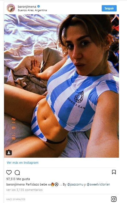 Muchas artistas y modelos destacadas, se mostraron luciendo un look mundialista. Sol Pérez fue una de las primeras en publicar su postal en su perfil de su cuenta oficial de Instagram vistiendo un conjunto albiceleste muy sensual.