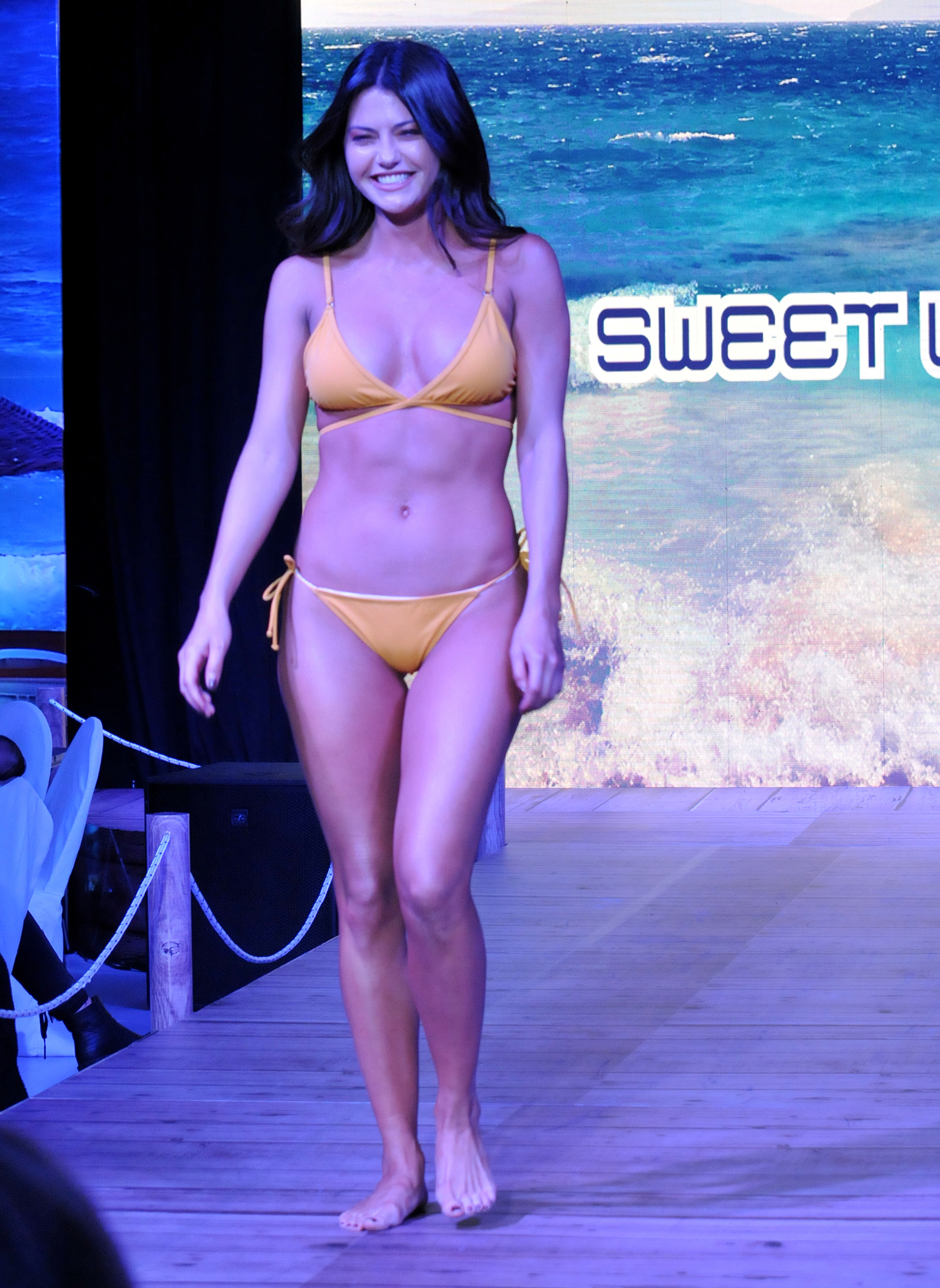 La novia de Benjamín Vicuña presentó su línea Sweet Lady, by China. En el salón de Costa Salguero, una de las destacadas fue la periodista y modelo Sofía "Jujuy" Jiménez.