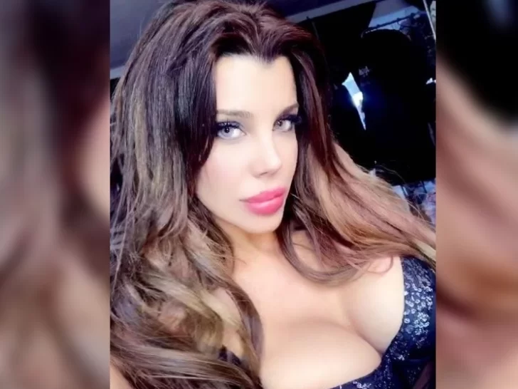 En la fotografía se la ve sentada sobre una mesa, luciendo un excéntrico look rokero, con el cabello negro y lacio, junto a esto, unos brazos muy flaquitos.