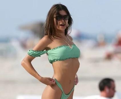 Tras disfrutar de unas vacaciones en la paradisíaca isla griega de Mykonos, Emily regresó a la tierra de Donald Trump, donde se encontró con su marido, Sebastian Bear-McClard. Enamorados y mimosos, la diosa y el productor de cine se mostraron muy apasionados. ¡Y Ciudad te muestra las fotos! Siempre sexy, Ratajkowski lució un bikini ultra cavado verde claro, al mejor estilo ochentoso.