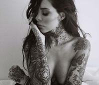 En las fotos tomadas por Chantal Boutet, en blanco y negro, se la puede ver a la hija de Marcelo Tinelli mostrando su espalda desnuda, luciendo unos jeans de tiro alto que hacen juego con el arte plasmado en su piel.