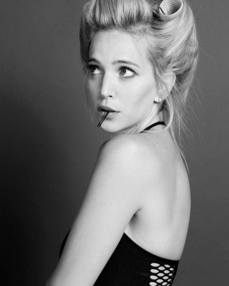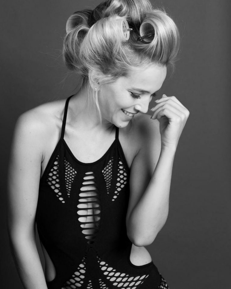 En las últimas horas, la actriz publicó tres fotografías en las que se la ve luciendo ruleros, con invisibles en su boca y vestida con un body calado de color negro.