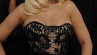 Sobre la alfombra roja del hotel Beverly Hilton de Los Ángeles, la cantante lució un vestido de encaje ceñido al cuerpo con una faja en la cintura. Además, el más que pronunciado escote le quedada chico.