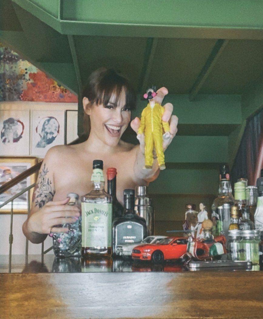Tapando su cuerpo desnudo con las botellas de alcohol, Ansaldi sonrió a la cámara con un muñeco de juguete similar a uno de los protagonistas de la serie Breaking Bad. En ese sentido, en menos de una hora la publicación alcanzó los dos mil “me gusta”.