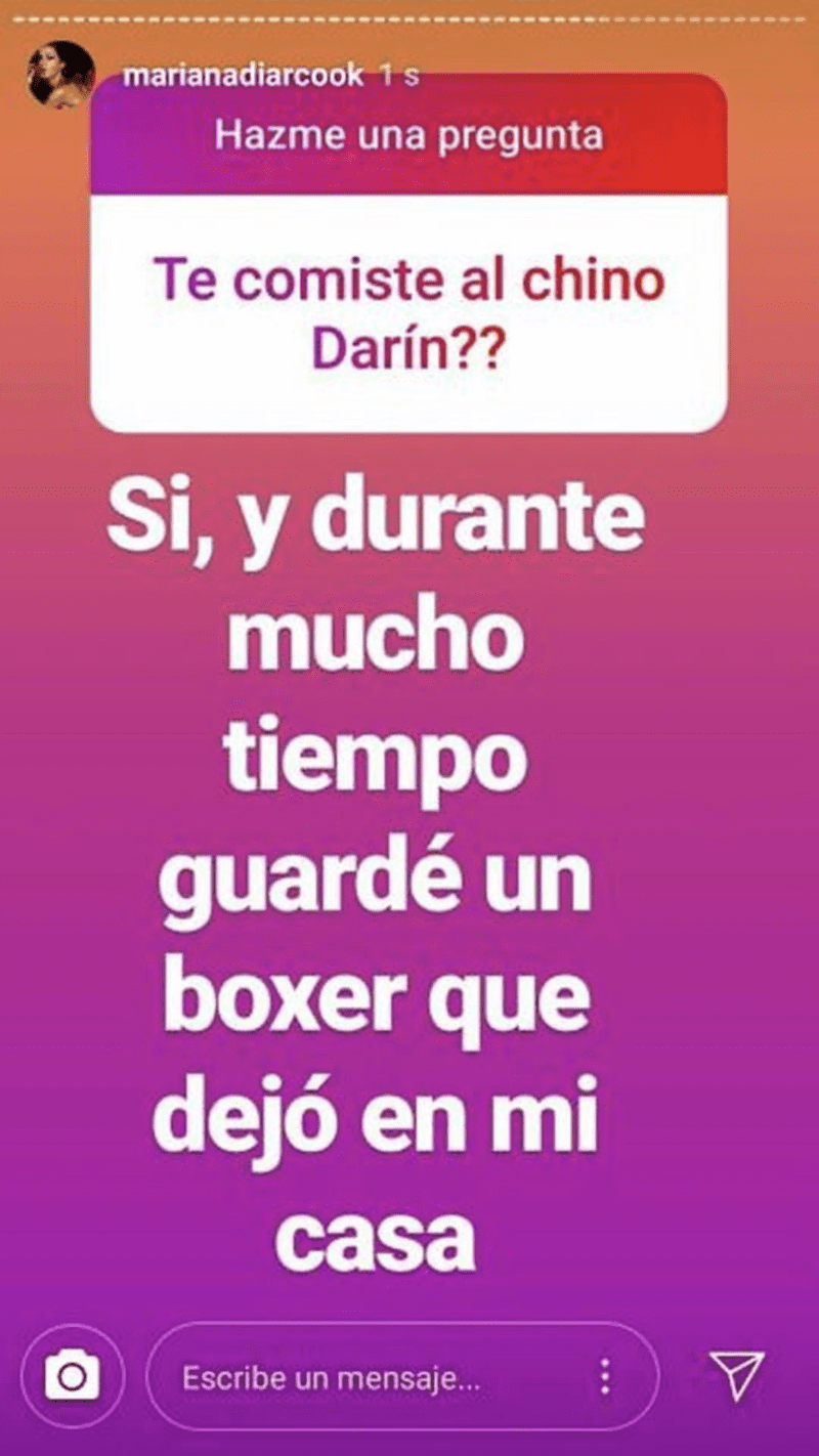 Sin ningún tipo de filtro alguno, un usuario le preguntó si había estado con El Chino Darín, y siguiendo el tren de confesiones dijo que sí.