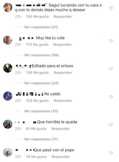 En una de las imágenes la actriz mostró su cola y sus seguidores la criticaron sin filtro: "Qué horrible le queda", "Hay que meterle ejercicio a ese traste", "Re caído".