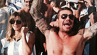 Los fotógrafos enviados especiales a Brasil de la revista "Gente" encontraron a Marcelo, con Guillermina, su primo "El Tirri" y su hijo Francisco festejando alocadamente la victoria de la Selección.