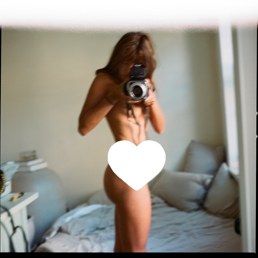 Pero no es la primera foto que publica desnuda. Hace unos días, subió una fotografía en donde se encuentra parada, sujetando una cámara analógica y la mitad de su cuerpo está cubierto con una manta, mientras el otro costado lo luce desnudo.