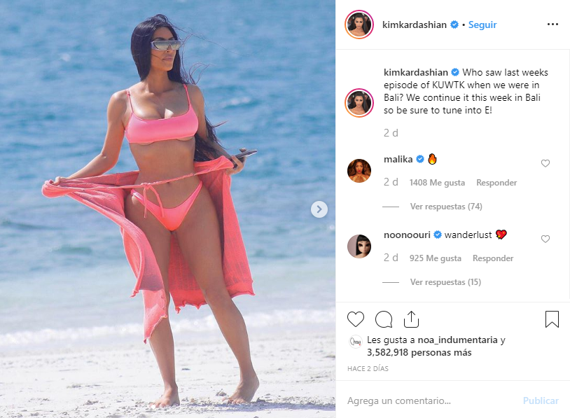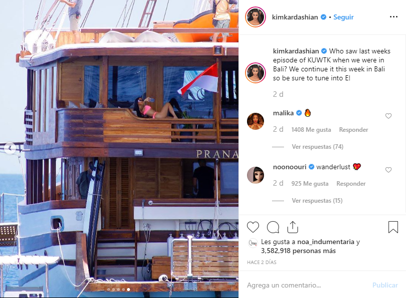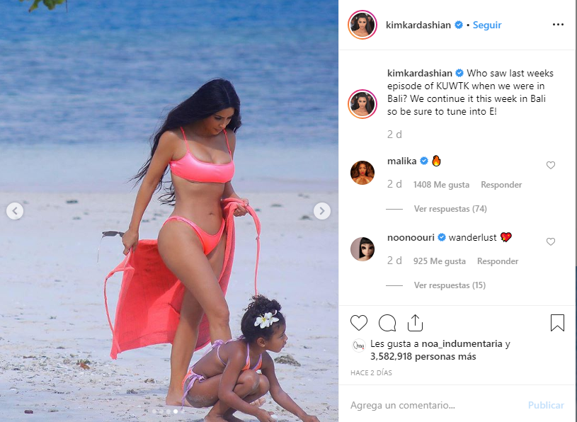 Las fotos en cuestión parecen ser el adelanto de los promocionales del reality show de la televisión. “¿Quién vio el último episodio de KUWTK cuando estábamos en Bali? Continuamos esta semana en Bali, así que asegúrate de sintonizar E!”, escribió la empresaria en la publicación.