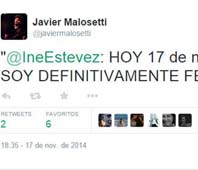 Ya con el rumor en los medios, Estévez volvió a usar Twitter, pero esta vez para retuitear a una seguidora que le mandó un mensaje con muy buena onda y picardía: "La cholulés me parece una gronchada. Aún así amo fuertemente la pareja @javiermalosetti e @ineEstevez”. Una manera muy particular, en la era de las redes sociales, de confirmar que está en pareja.