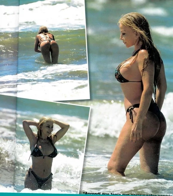 La revista Gente publicó las imágenes donde Alfano luce su esbelto cuerpo en una microbikini negra.