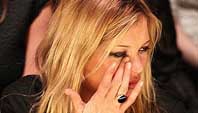 La diosa acudió el jueves a un desfile benéfico ‘Moda para ayudar a Haití’ en El Somerset House de Londres y no pudo contener las lágrimas cuando se subastó su vestido de la última colección del fallecido diseñador.