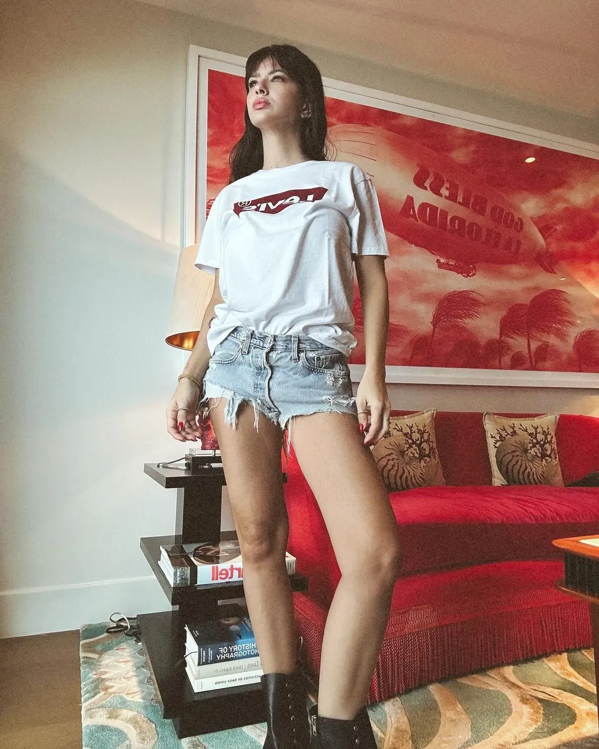 La actriz sorprendió a sus seguidores al compartir un album de fotos donde no solo estrenó flequillo sino que eligió unos shortcitos de jeans ultra cortos. Súper canchera, la diosa los combinó con remerita Levis, borcegos y no se privó de ningún angulo para dejar a la vista hasta el último detalle de su atuendo.