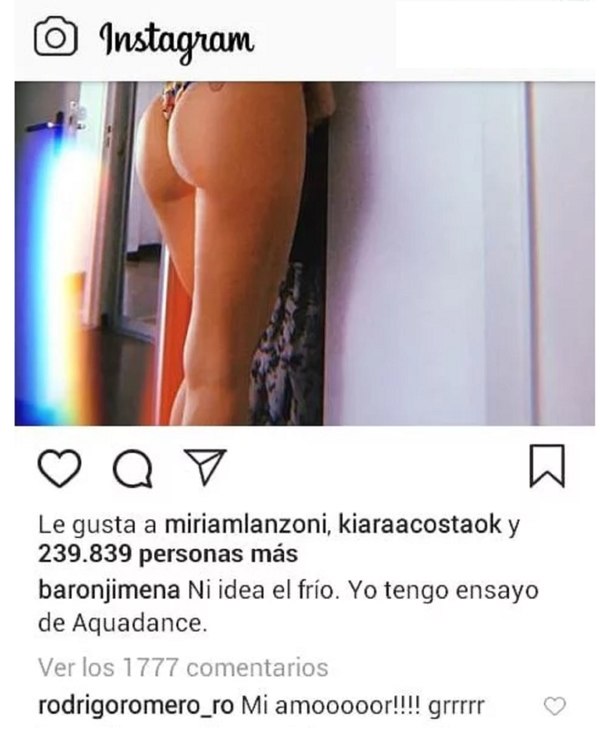 Su novio, Rodrigo Romero, el actor que interpreta a Rodrigo Bueno en la película de El Potro, fue uno de los casi dos mil usuarios –hasta ese momento- que comentaron el posteo en Instagram.