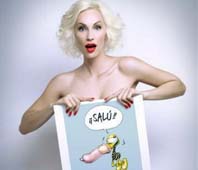 "Mi Campaña apoyando el Día Mundial de la lucha contra el HIV", escribió Grudke junto a las fotografías en las que se la pudo ver sin ropa pero tapando su escultural anatomía con diferentes caricaturas con mensajes promoviendo el uso del preservativo.