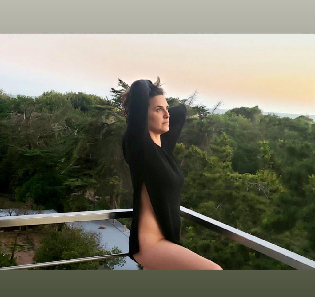 En la misma, se la puede ver vistiendo una remera de manga larga y sin ropa interior alguna. En la imagen, ella se encuentra en el balcón de la habitación del establecimiento donde se relaja luego de participar en “Pequeña Victoria”, uno de los éxitos de la televisión de esta última temporada.