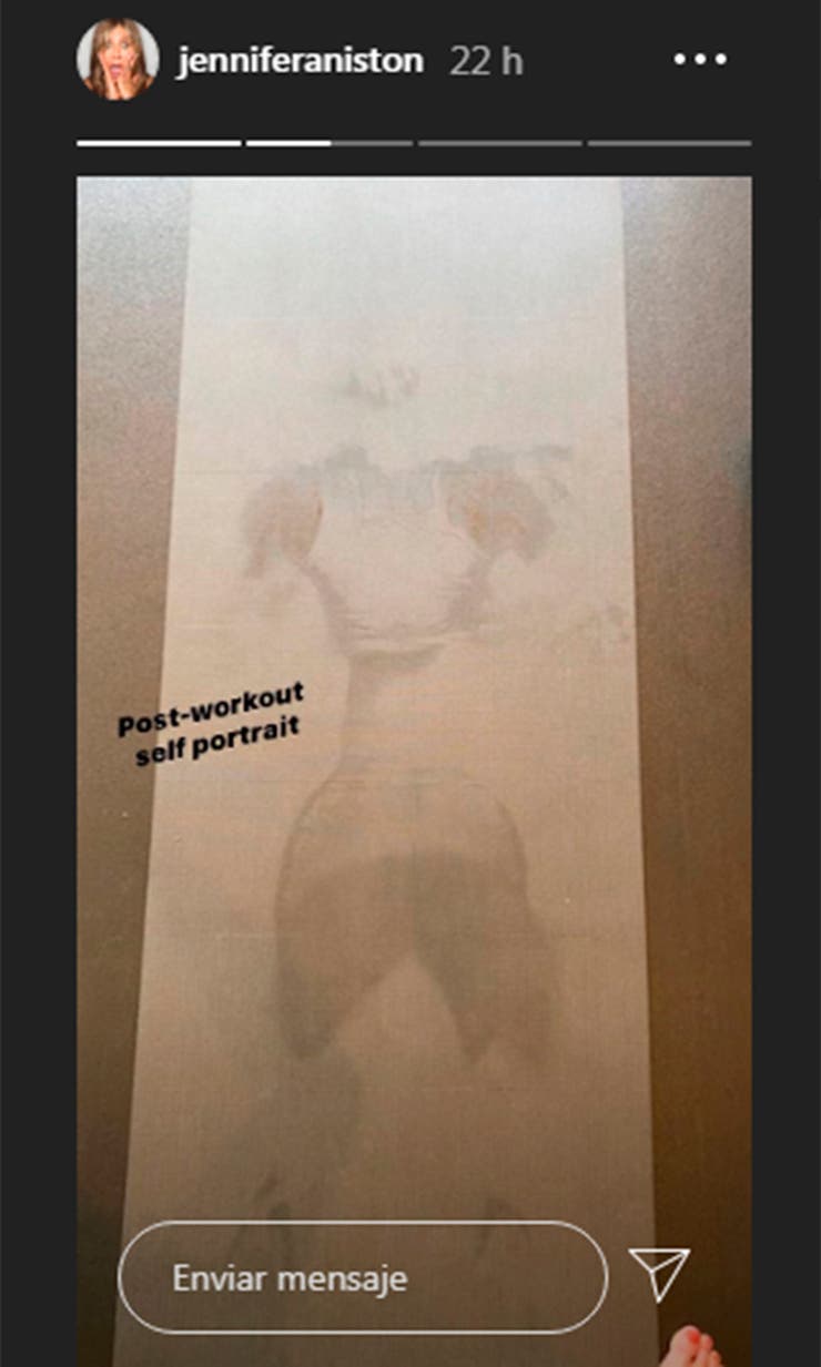 "Autorretrato post-entrenamiento", escribió la protagonista de Friends junto a la postal, para que no queden dudas de que ella era la dueña de ese cuerpo.