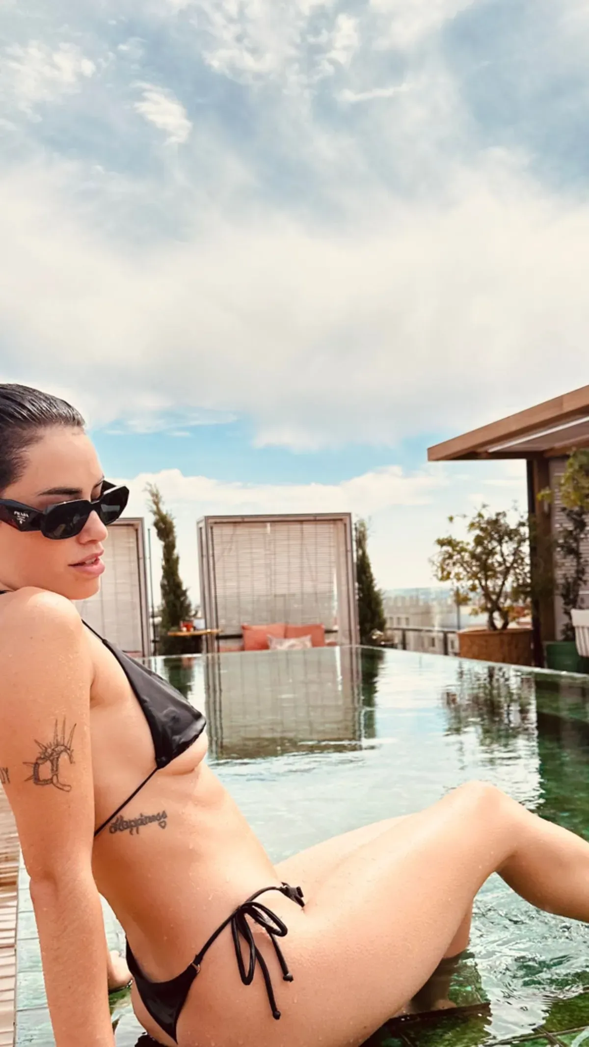 Aprovechando las altas temperaturas que se están viviendo en Madrid, Lali disfrutó de la piscina de su hotel y aprovechó para presumir su figura.