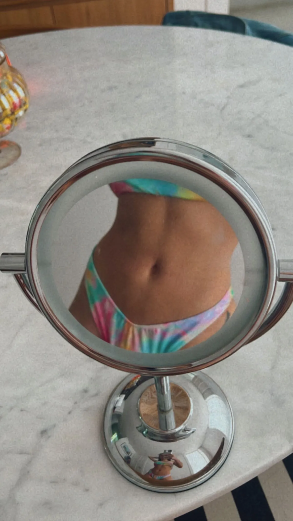 Siempre atenta a las últimas tendencias, Lali lució un diseño estampado batik y súper atrevida le hizo primer plano a su bombacha tomando una original selfie frente al espejo.