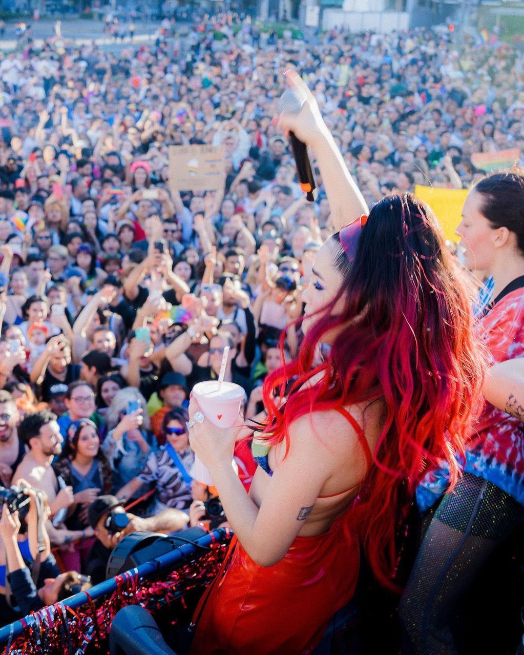 Pocos días atrás, la cantante argentina fue uno de los detalles más importantes de la marcha y festival por el Orgullo LGBT+. Se presentó sobre uno de los micros descapotables y bailó sin parar junto a otras artistas como Moria Casán y Justina Bustos.
