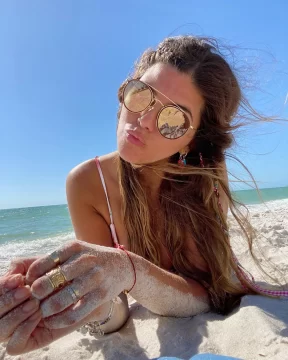 “Bendecida y agradecida”, escribió junto a las imágenes donde se la puede ver arrojándose agua del mar en cámara lenta.