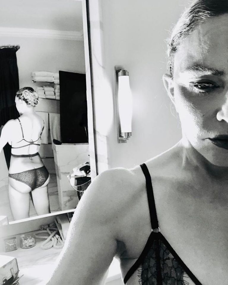 En la pic de Madonna podemos observarla frente al espejo con un sombrero oscuro y una muleta. La intérprete de “La Isla Bonita” se encuentra recuperándose de una lesión en la rodilla.