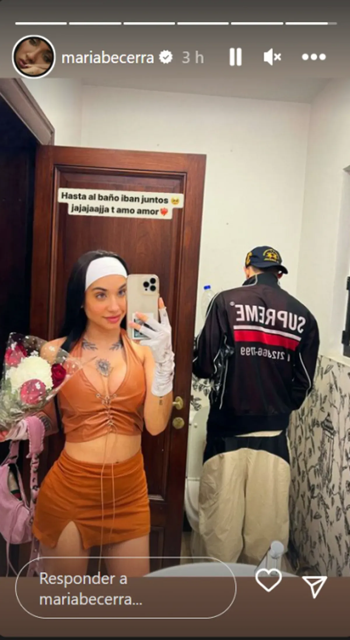 En medio de todo el revuelo por la inesperada colaboración con Rusherking en el tema, María Becerra compartió una imagen junto a su novio J Rei en el baño.
