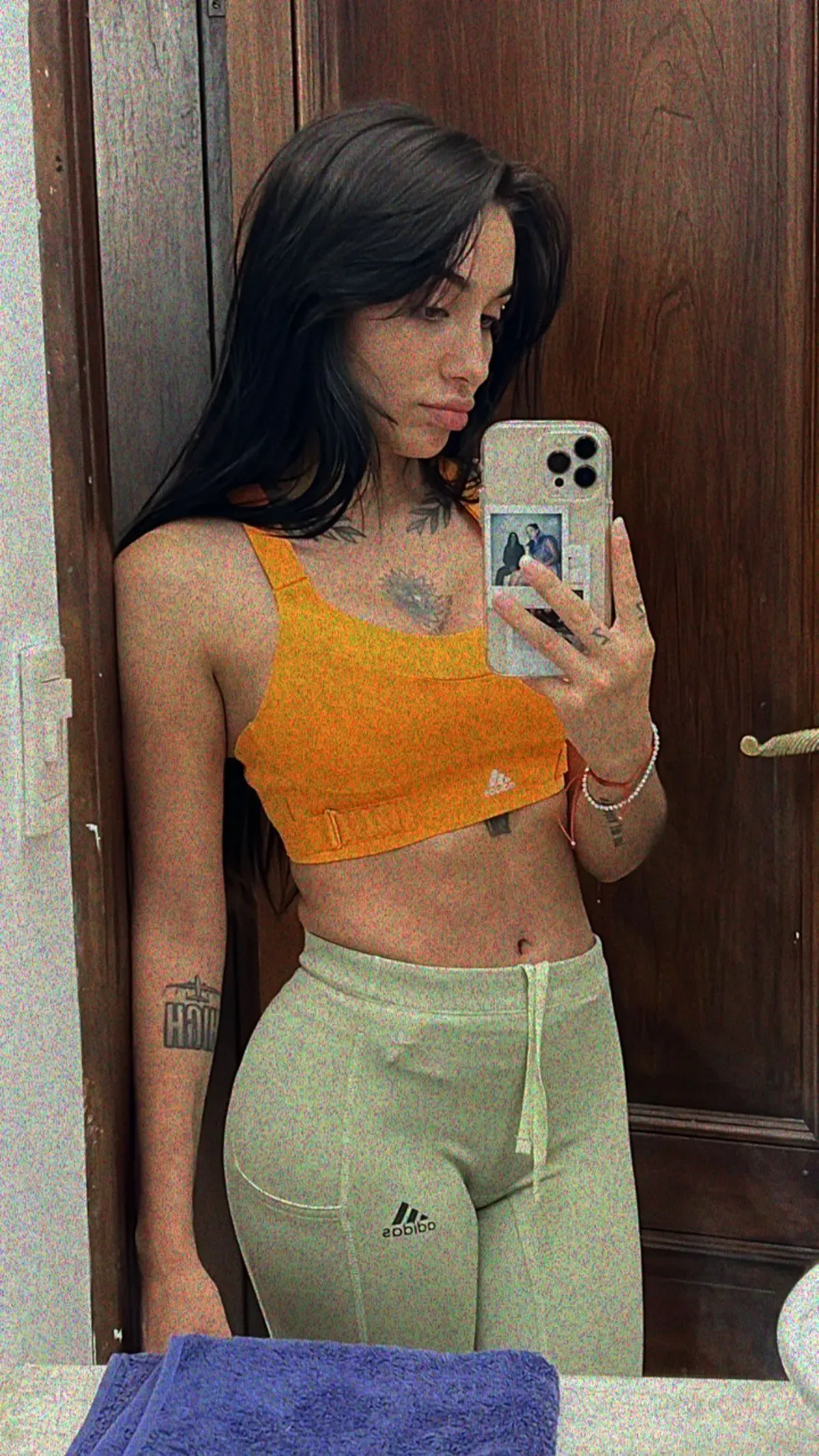 La diosa posó con unas calzas verde agua y un crop top color naranja, y aunque se trató de una publicación de su día a día, lo cierto es que se hizo viral en minutos generando toda una revolución entre sus fans.