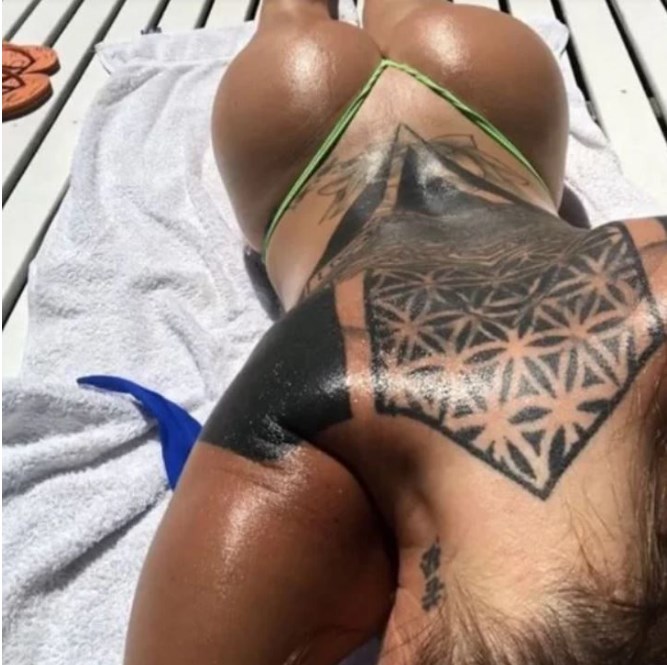 Esta vez, la ex GH apostó a una foto en la que posó con una microbikini y dejó ver el tatuaje que cubre toda su espalda. “Llega septiembre y es la hora de entregarse”, escribió en el epígrafe de la publicación.