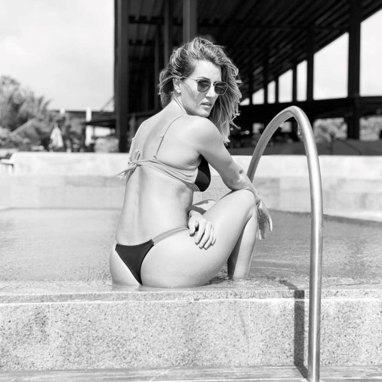 En una de sus fotos, la actriz se estiro tanto que no se dio cuenta que se alcanzaba a ver un tatuaje ubicado por la parte inferior de su bikini. El pequeño detalle ha llamado la atención de muchos seguidores, quienes han realizado comentarios relacionados con el dibujo.