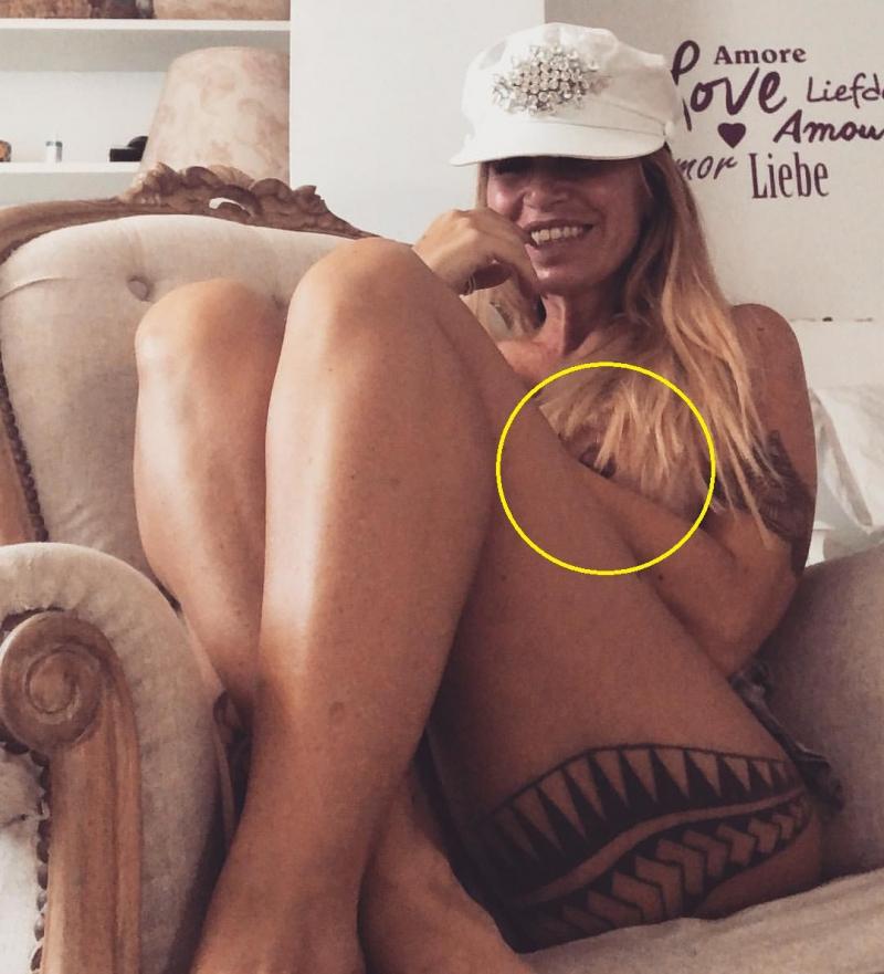 Tal como hizo durante sus vacaciones en el caribe, y en la costa argentina, mostrando su el enorme tatuaje que tiene en su muslo y glúteos. la actriz volvió a mostrar su lado más sexy y publicó una secuencia de fotos donde se la ve totalmente desnuda, luciendo un gorro.