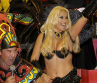 Verónica Ojeda se calzó las plumas y se divirtió a pleno en el carnaval de Gualeguaychú ante una multitud.