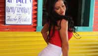 Este mediodía, la morocha grabó un video clip junto a Banda XXI, de la cual es fan, y estuvo bailando y mostrando su escultural cuerpo en pleno barrio de La Boca.