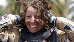La alemana Cristina Meier se pinta las uñas en el camión y asegura: “El poder de la mente no tiene nada que ver con que seamos hombres o mujeres. Nosotras tenemos menos músculos, pero manejamos mejor con la cabeza. Ellos nunca saben cuándo parar, arriesgan demasiado y algunos así se condenan a abandonar”. Para vivir, ella organiza campamentos en el desierto sólo para mujeres (www.desertemotion.net).